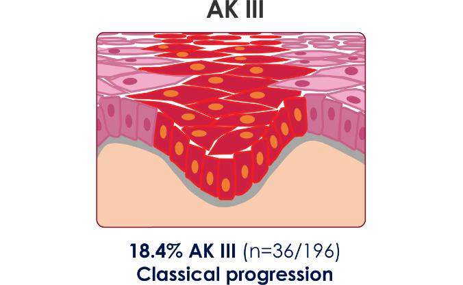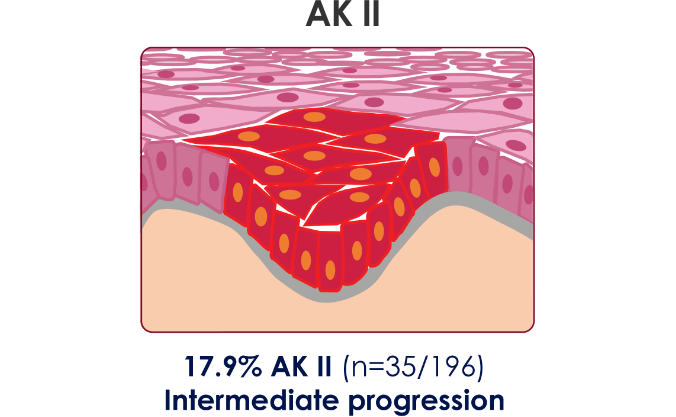 AK lesions at any stage, severity, or depth have the potential to progress to iSCC with a reported progression risk between .025% and 16%4,8,9