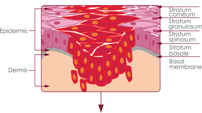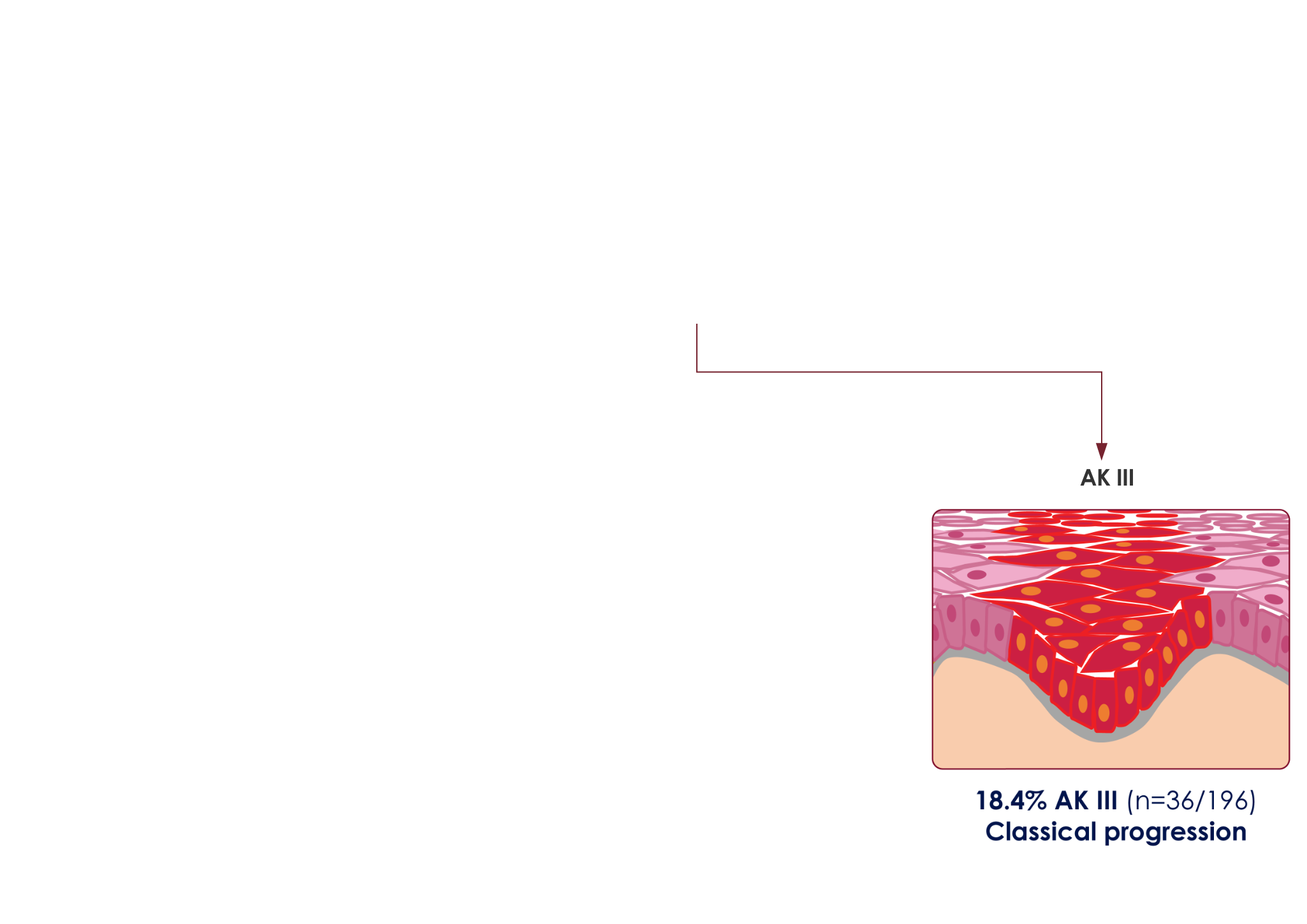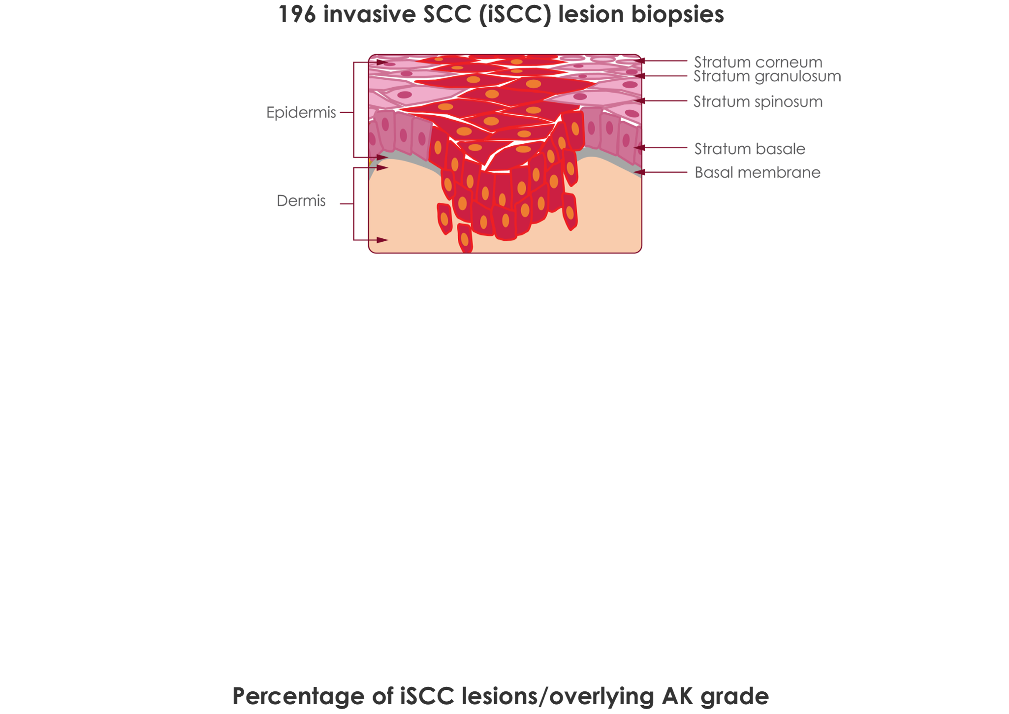This model was derived from results of a relatively small study size of 196 skin biopsy specimens, taken at a single center, and does not provide a universal representation of iSCC pathogenesis. Thickness of the epidermal proliferation of atypical keratinocytes overlying the tumor and at its edges was studied. The 196 iSCCs were then assigned to a group (AK I, II, III) depending on the highest AK grade with which they were associated.1